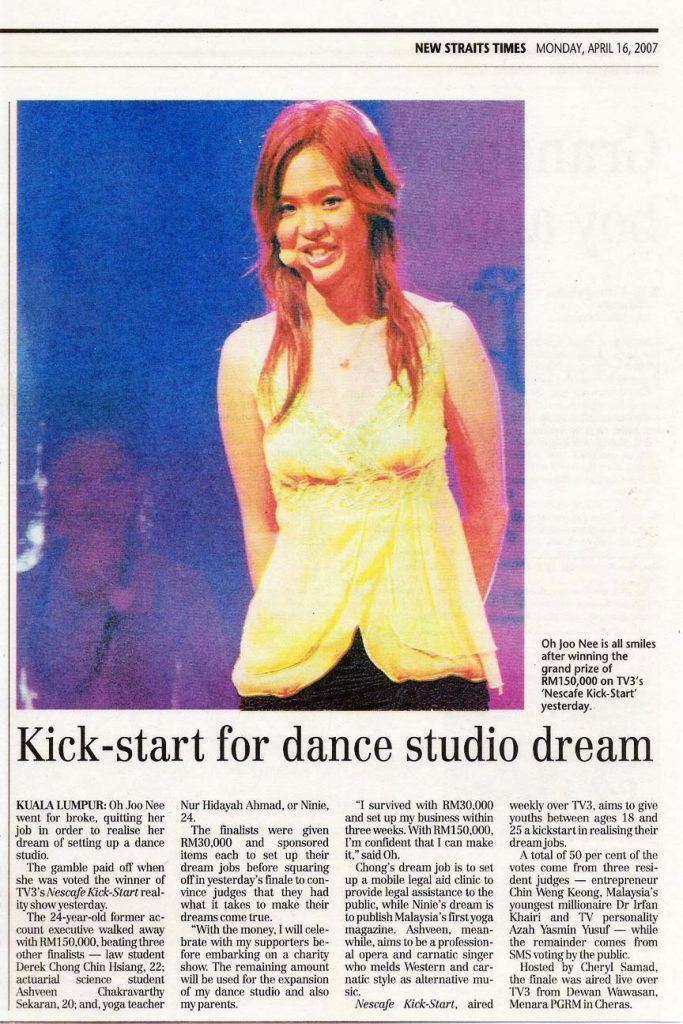 Kick-Start for Dance Studio DreamBy admin / April 16, 2007 Newspaper article from News Straits Times, 2007.